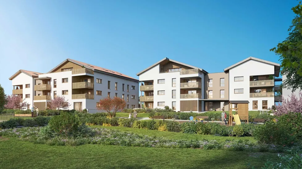 Dans un cadre convivial, résidentiel et familial, cette réalisation présente une architecture inspirée des bâtiments locaux, incluant un enduit clair et une forte utilisation du bois, doublant éco responsabilité et esthétique. C’est dans ce cadre que le projet offre une panoplie d’appartements neufs du 2 au 5 pièces, dont de beaux duplex.