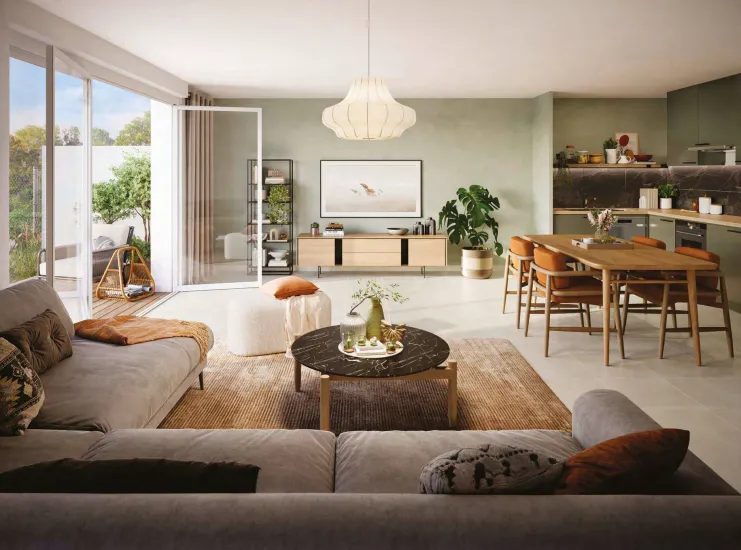Pénétrez un quartier calme, pavillonnaire et boisé et repérez une résidence intégrée dans un écrin de verdure. Cette dernière est composée de 35 villas 4 pièces et 39 appartements allant du 2 au 4 pièces. A l’entrée, un parc est accessible pour échanger avec les autres résidents. Direction l’intérieur, pour découvrir les prestations de qualité qui vous attendent : une salle de bain en faïence, des volets roulants électriques, des placards aménagés avec penderie et étagères pour plus de praticité et même une chambre parentale avec parquet stratifié et salle d’eau pour les plus chanceux. Vous avez même la possibilité de meubler et d'équiper la cuisine selon vos goûts !