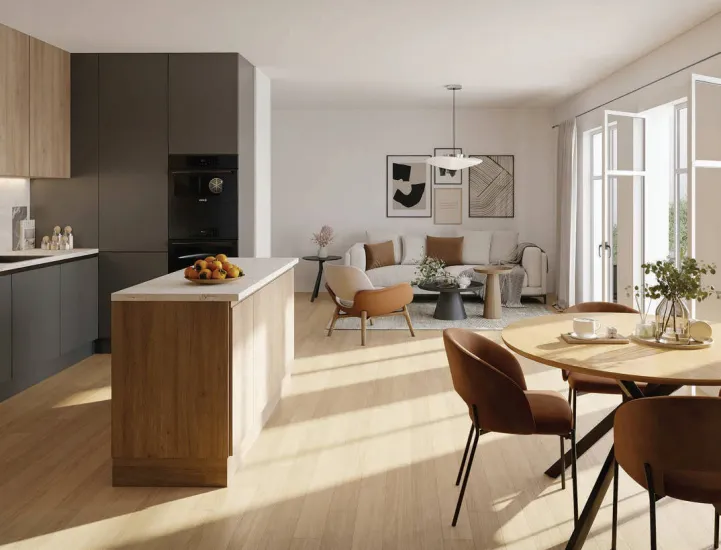 Cet ensemble résidentiel s’articule autour d’un coeur d’îlot vert, accueillant des appartements neufs du studio au 4 pièces et des maisons neuves 3 ou 4 chambres. Les espaces de vie sont lumineux et spacieux, orientés est-ouest. A vous la luminosité naturelle tout au long de l’année !